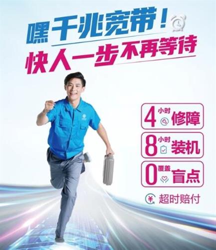 “全千兆”不仅是宽带速度的提升,更是服务品质的保障。2019年起,中国移动推出 “快装快修,断网无忧”的宽带服务,承诺在江苏13个地市的主城区范围内4小时修障、8小时装机、0覆盖盲点,超时赔付。